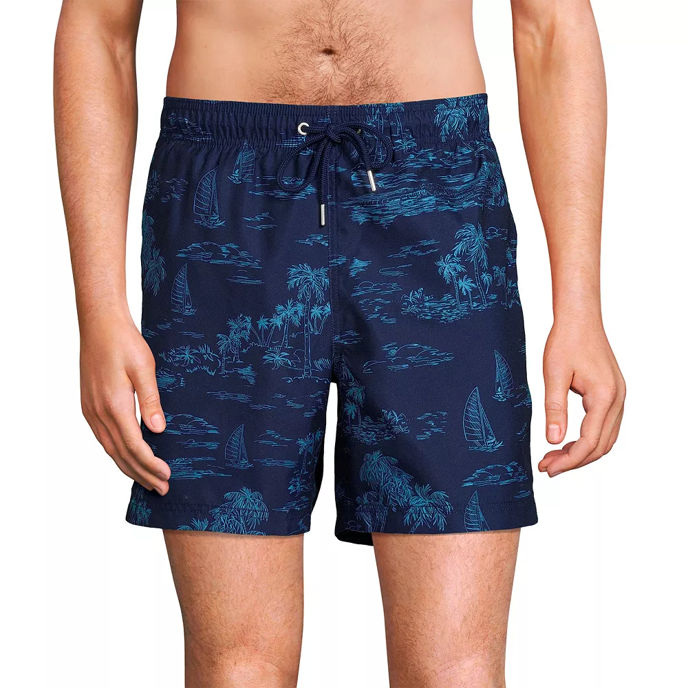 Serve up some beach-worthy style with these men’s Lands’ End volley swim shorts.