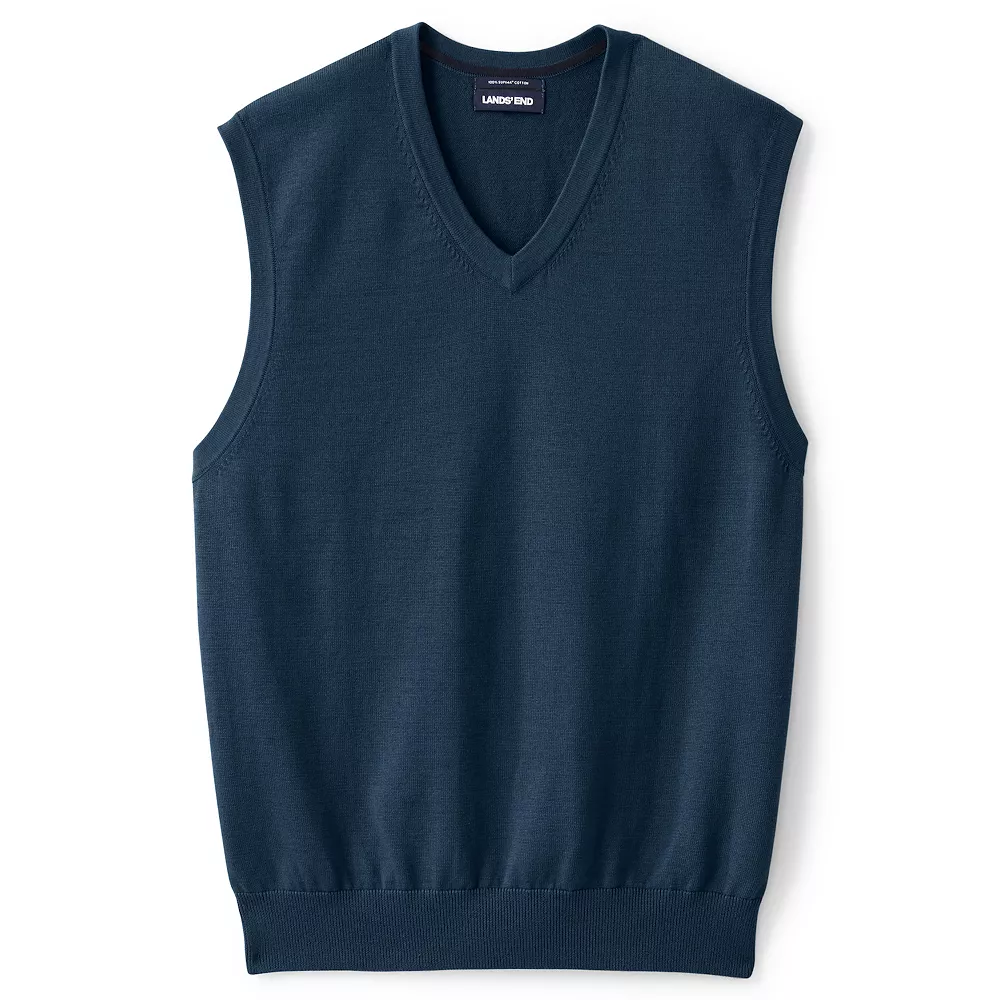 Add an extra element of style to your casual look with this men’s sweater vest from Lands’ End.