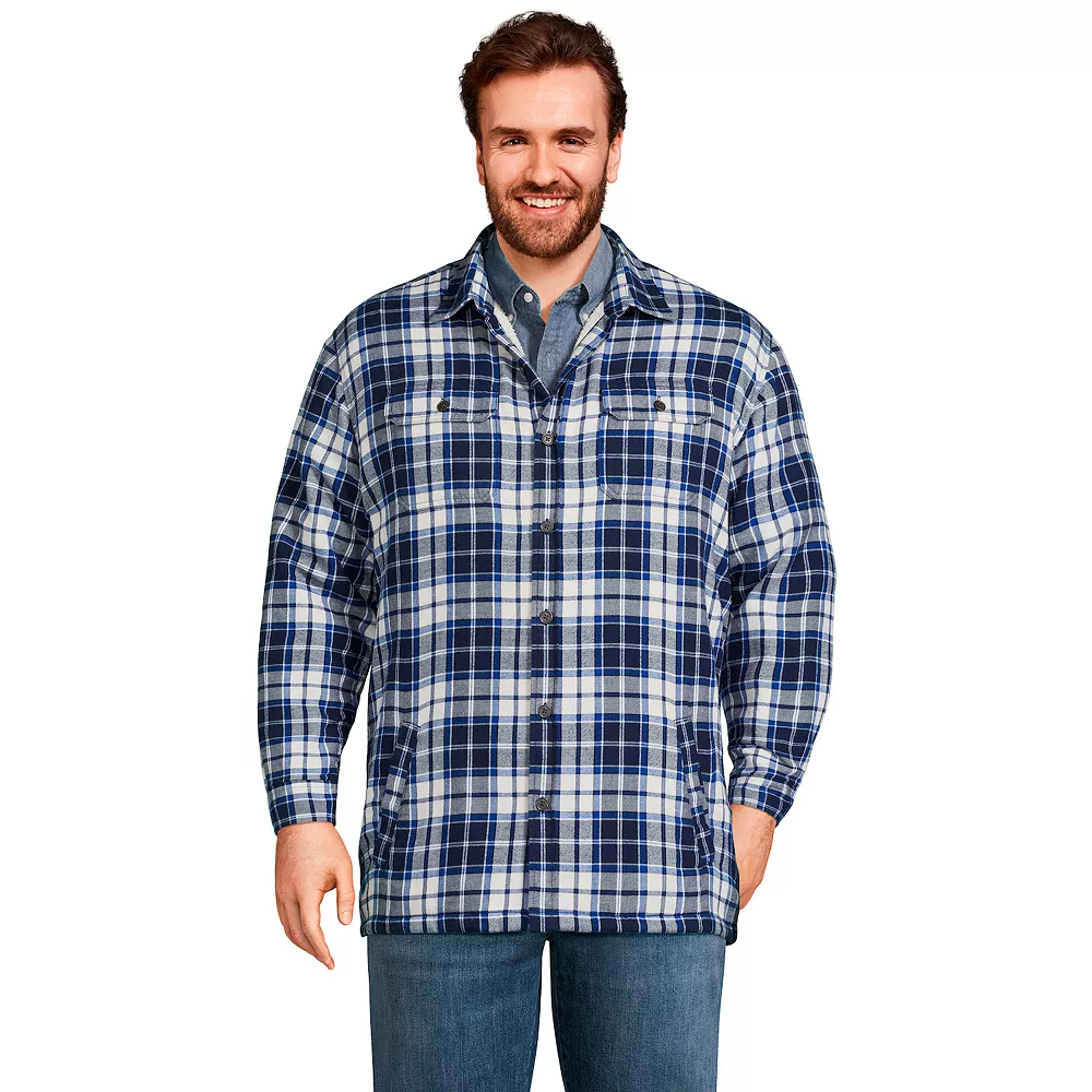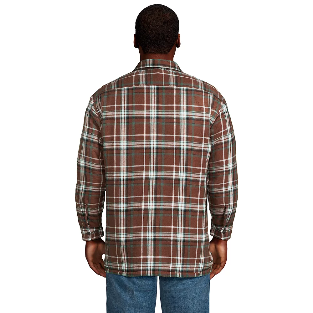 You’ll really warm up to trendy style with this men’s Lands’ End sherpa-lined shirt jacket.