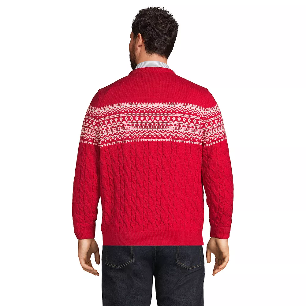 Fairisle style. You’ll stay comfortably warm wearing this men’s Lighthouse cable sweater from Lands’ End.