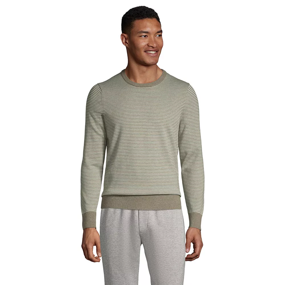 Stripe type. Make a stylish statement in this men’s striped crewneck sweater from Lands’ End.