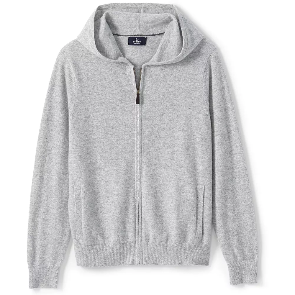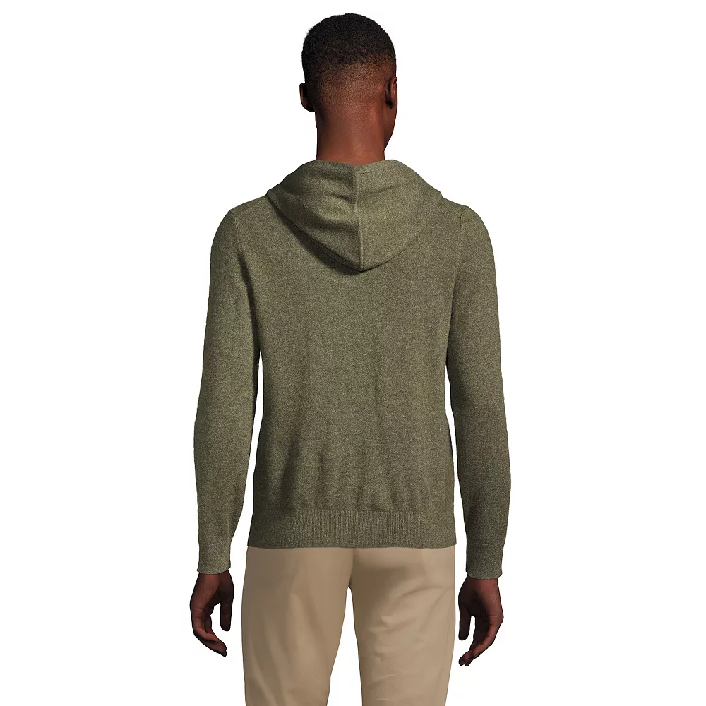 This men’s Lands’ End cashmere hoodie is loaded with supreme comfort and style.