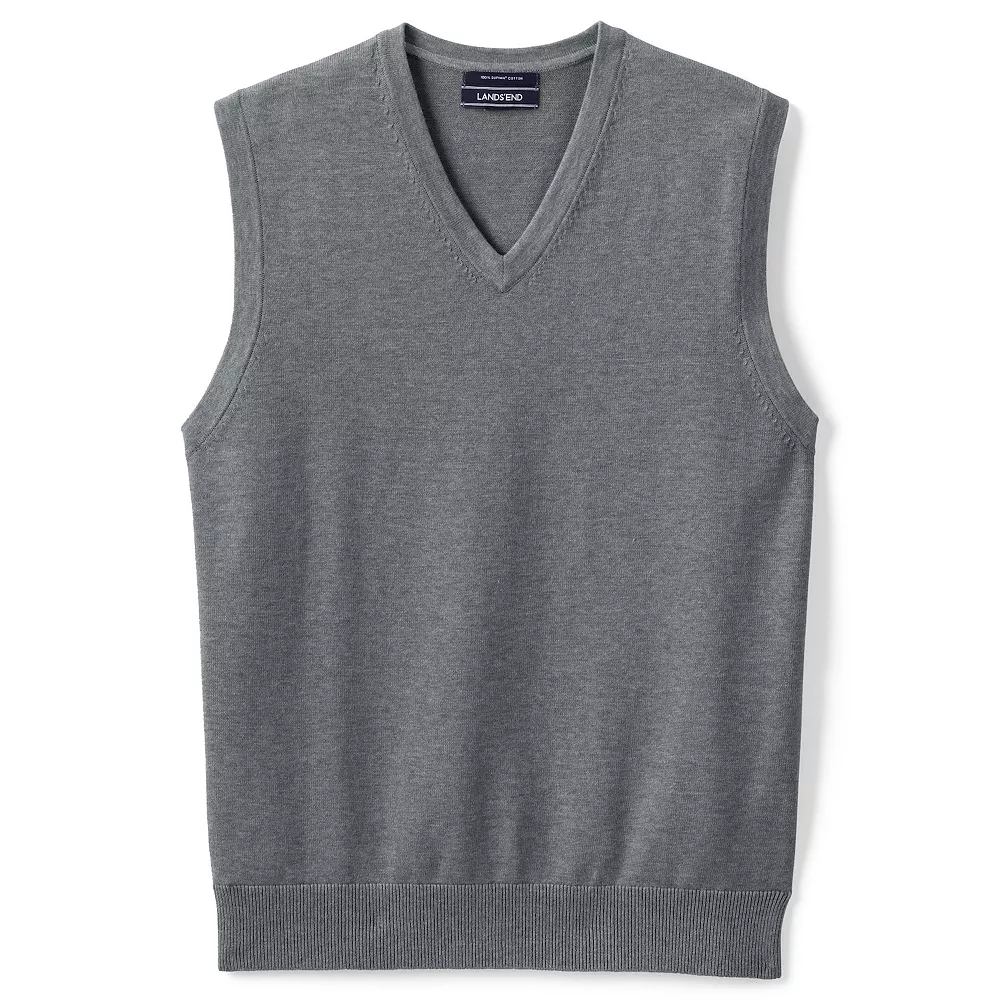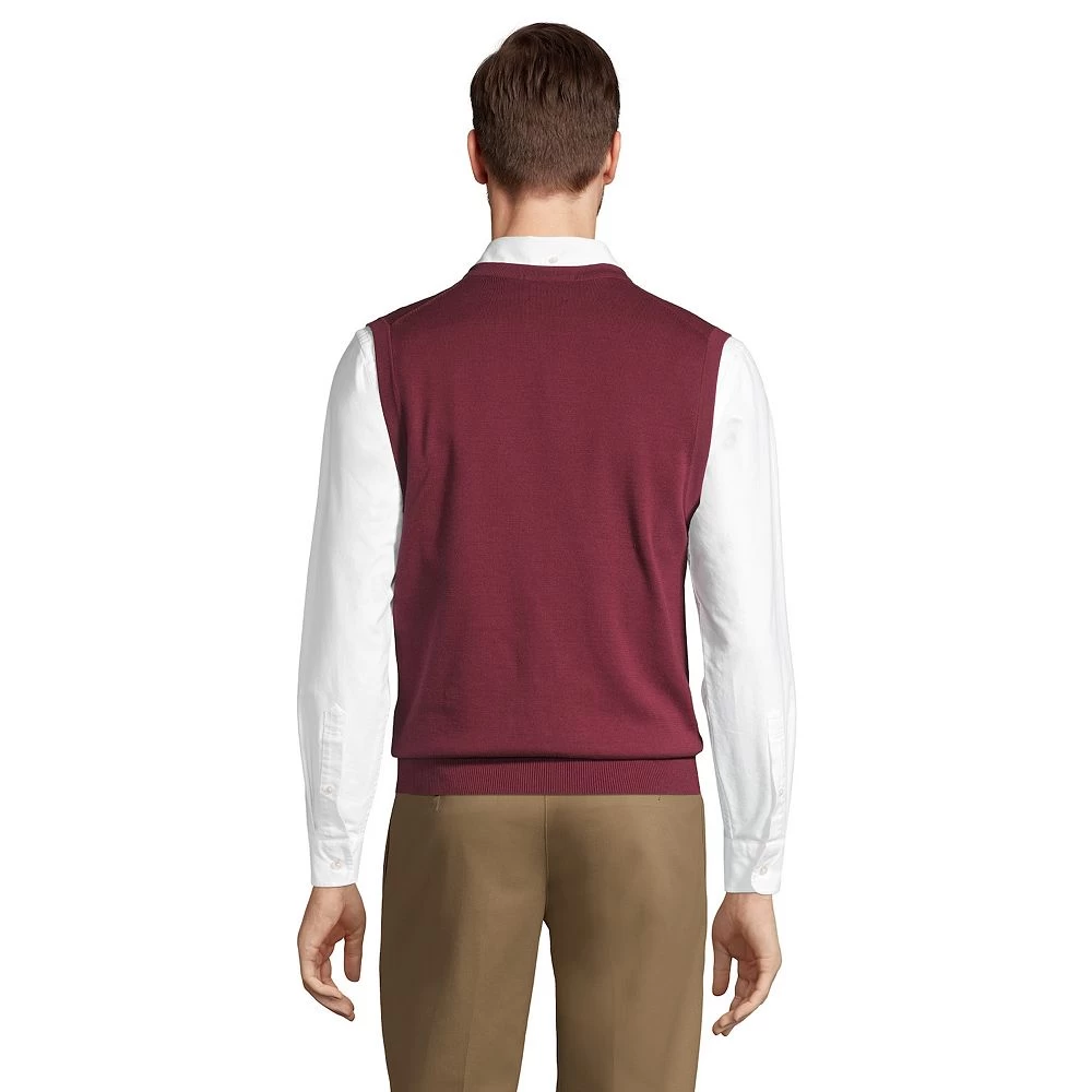 Layer this men’s Lands’ End sweater vest over a coordinating shirt for a fabulous look.