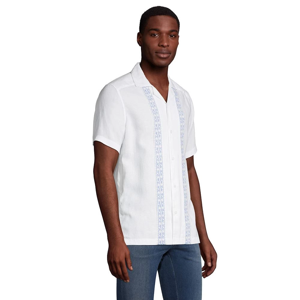 Stay cool and comfortable while looking styling in this men’s linen button-down shirt from Lands’ End.