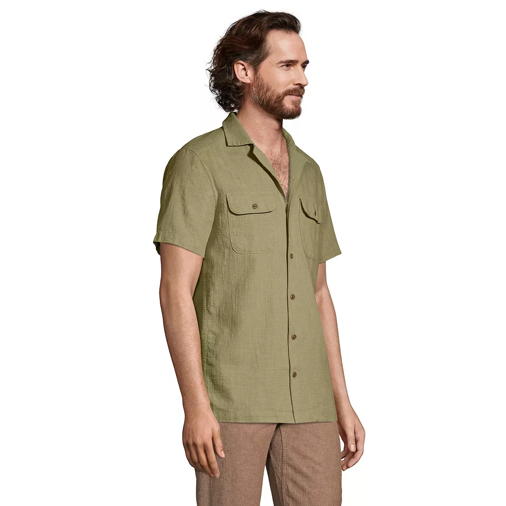 Relaxation required. With its soft and breathable linen fabric, this men’s Lands’ End linen vacation shirt always keeps you comfortable and cool all day long.