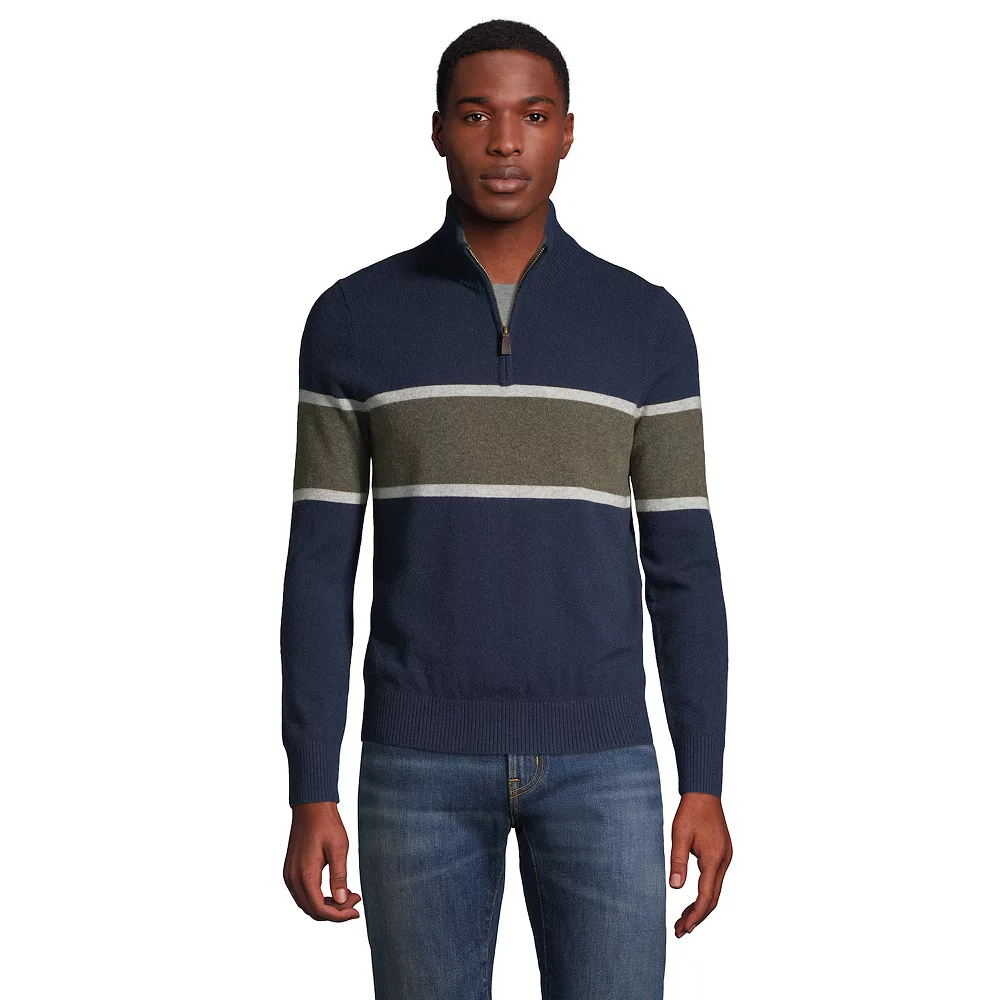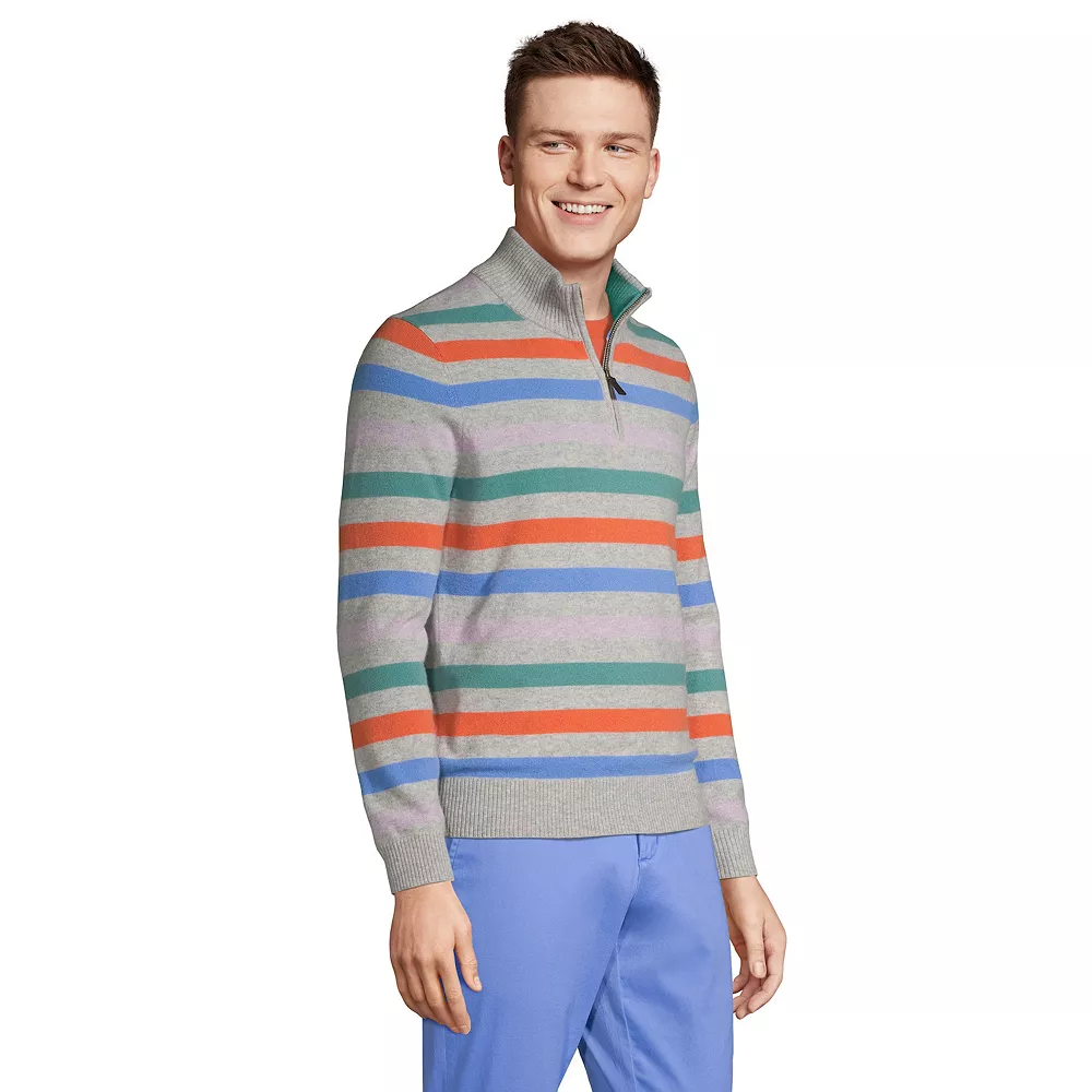 Enjoy the comfort of cashmere with this men’s striped pullover from Lands’ End.