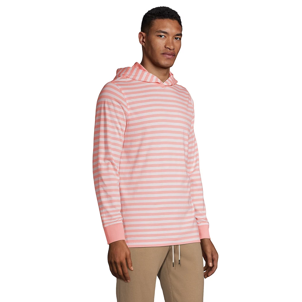 Layer on the style and comfort with this men’s striped cotton hoodie from Lands’ End.