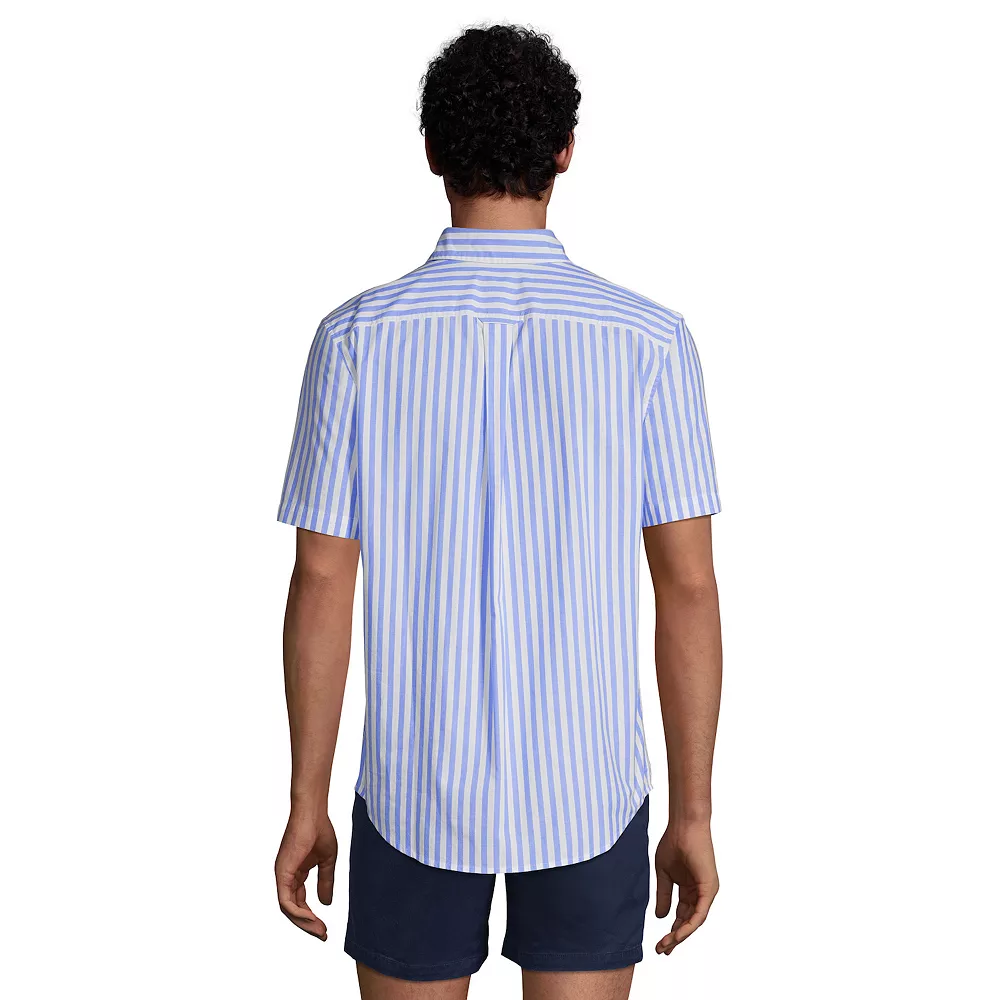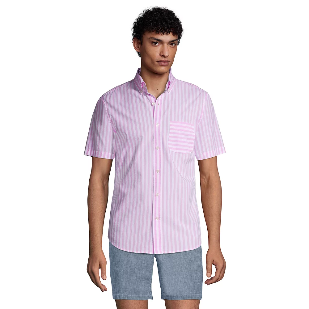 Make a stylish statement in this men’s Lands’ End button-down shirt. Lightweight design delivers constant comfort.