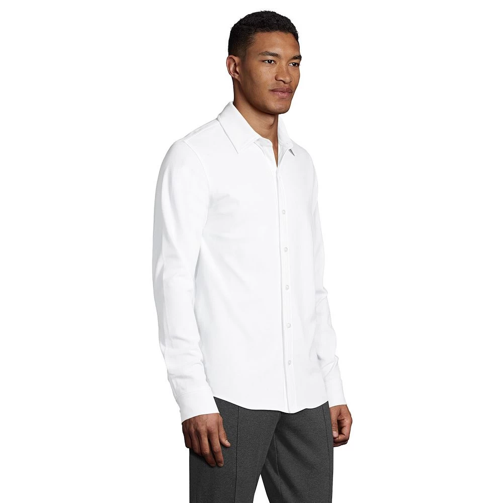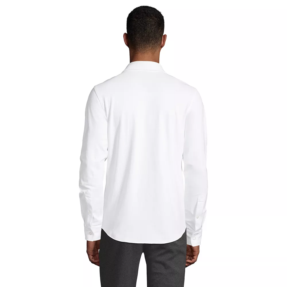 Make a stylish statement in this men’s Oxford button-down shirt from Lands’ End. Mesh fabric offers smooth flexibility. Looks great tucked or untucked.